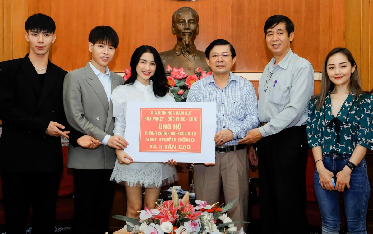 Mới đây, trên trang cá nhân, Hoà Minzy cùng 2 thành viên khác gồm Đức Phúc và Erik vừa đăng tải khoảnh khắc cùng chung tay góp sức vào công cuộc chống dịch bệnh Covid-19. Theo đó, gia đình “Hoa dâm bụt” quyên góp số tiền 300 triệu đồng, ngoài ra còn mua 3 tấn gạo với mong muốn Việt Nam sớm đẩy lùi dịch bệnh.