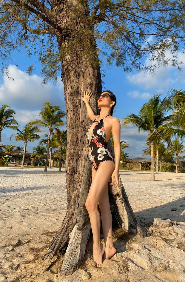 Đây không phải lần đầu tiên giọng ca gốc Hà Nội diễn áo tắm khoe body nuột nà, nhưng khi nhìn những bức ảnh này thì nhiều người phải ngỡ ngàng khi biết cô đã U40 và có một cậu con trai 8 tuổi. Sở hữu vóc dáng gợi cảm, giọng ca Chờ người luôn tự tin khoe khéo lợi thế hình thể của mình khi diện bikini hay những bộ đầm dạ hội phom dáng ôm sát.