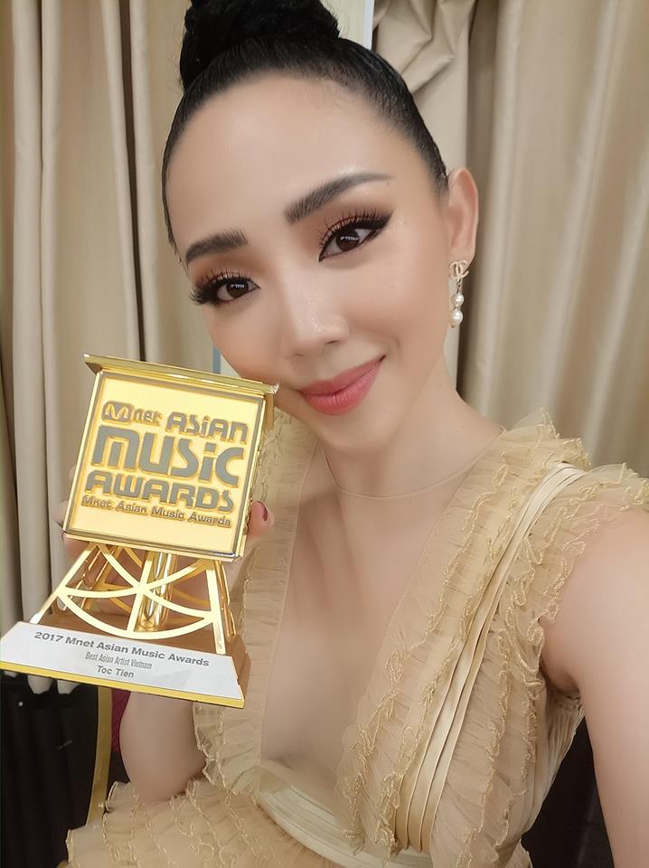 Tối 25/11, tại Lễ trao giải thưởng âm nhạc MAMA 2017 diễn ra ở nhà hát Hoà Bình, TP.HCM, ca sĩ Tóc Tiên được vinh danh ở hạng mục Nghệ sĩ châu Á xuất sắc nhất tại Việt Nam. Trên trang cá nhân của giọng ca Ngày mai đã chia sẻ hình ảnh cầm chiếc cúp danh dự cùng lời cảm ơn đến khán giả đã luôn bên cạnh bảo vệ, ủng hộ cô trên con đường hoạt động nghệ thuật.