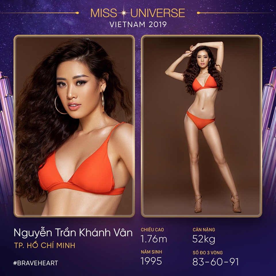 Nguyễn Trần Khánh Vân - học trò của Hương Giang tại Siêu mẫu Việt Nam 2018 quay lại Hoa hậu Hoàn vũ Việt Nam 2019 với quyết tâm chạm tay đến chiếc vương miện Brave Heart. Khánh Vân từng lọt Top 10 chung cuộc Hoa hậu Hoàn vũ Việt Nam 2017. Quyết tâm giành vương miện Brave Heart, Khánh Vân vẫn là ứng viên nổi bật khi sở hữu hình thể nổi trội và gương mặt xinh đẹp, được nhiều khán giả ủng hộ.