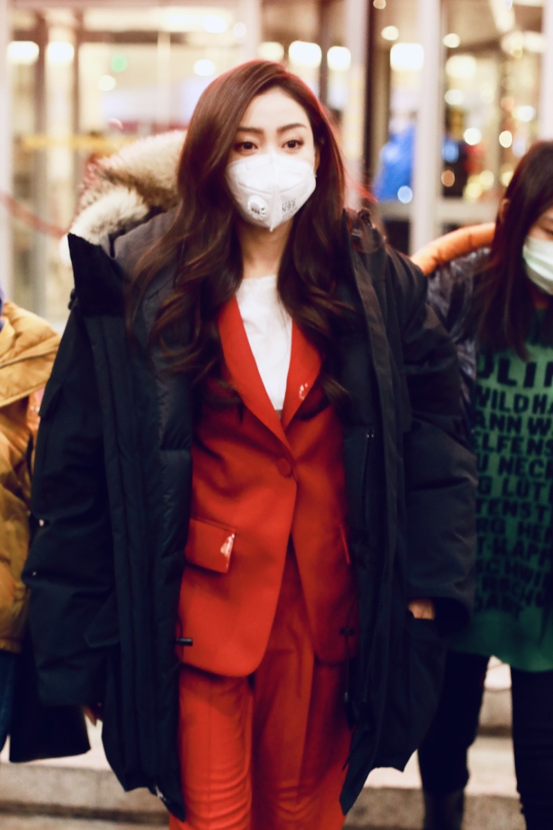 Trương Thiên Ái xuất hiện với bộ suit đỏ vô cùng hợp với không khí mùa xuân đang đến.