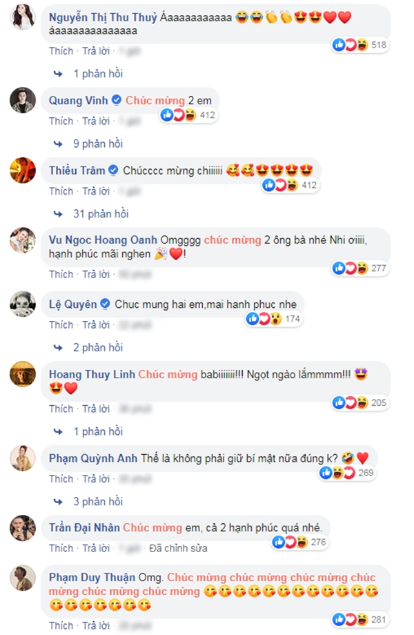 Dàn nghệ sĩ Việt chúc phúc cho cặp đôi.