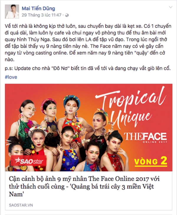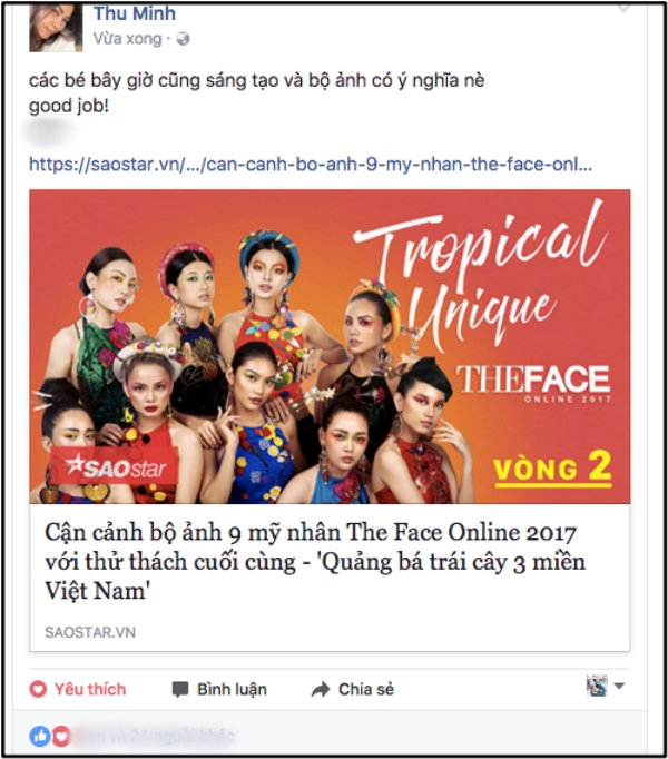 Thu Minh bất ngờ dành lời khen tặng cho bộ ảnh ý nghĩa của top 9 The Face Online.