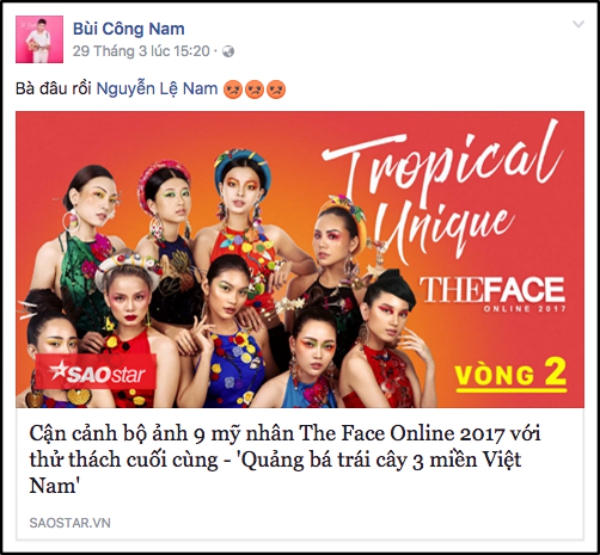 “Chí phèo” Công Nam tiếc nuối cho Lệ Nam không thể góp mặt trong top 10.