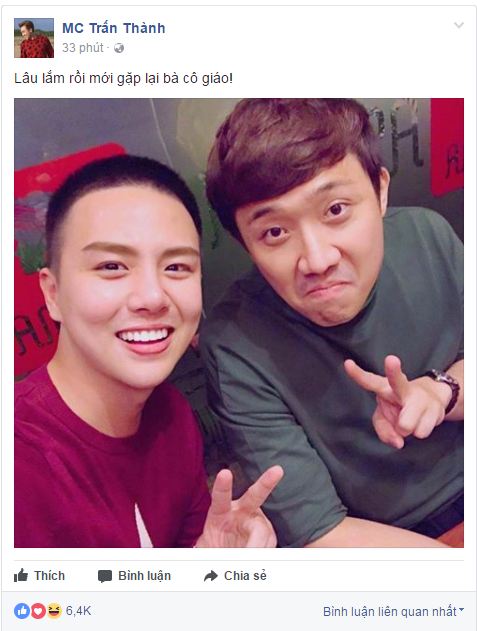 Trên trang Fanpage của Trấn Thành cũng chia sẻ bức ảnh tương tự.