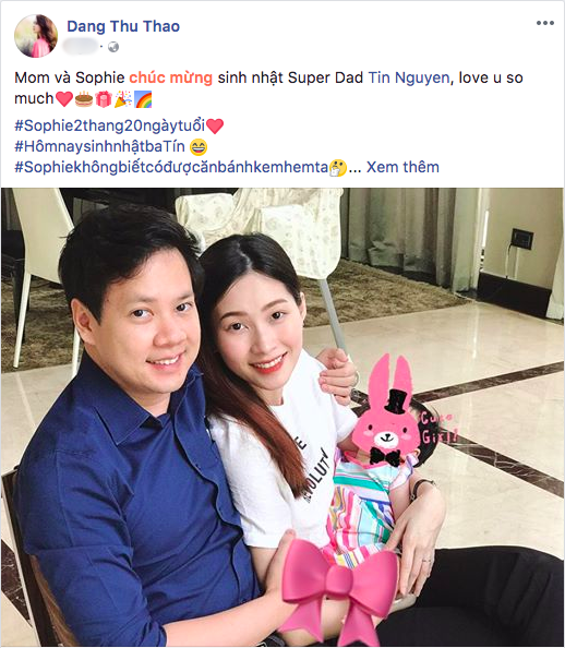 Mới đây, nhân dịp sinh nhật ông xã Trung Tín, Đặng Thu Thảo khiến nhiều người bất ngờ lẫn thích thú khi chia sẻ ảnh gia đình trên trang Facebook cá nhân. Theo đó, đây là lần đầu tiên Hoa hậu Việt Nam 2012 “khoe” con gái đầu lòng sau khi hạ sinh hồi giữa tháng 3.