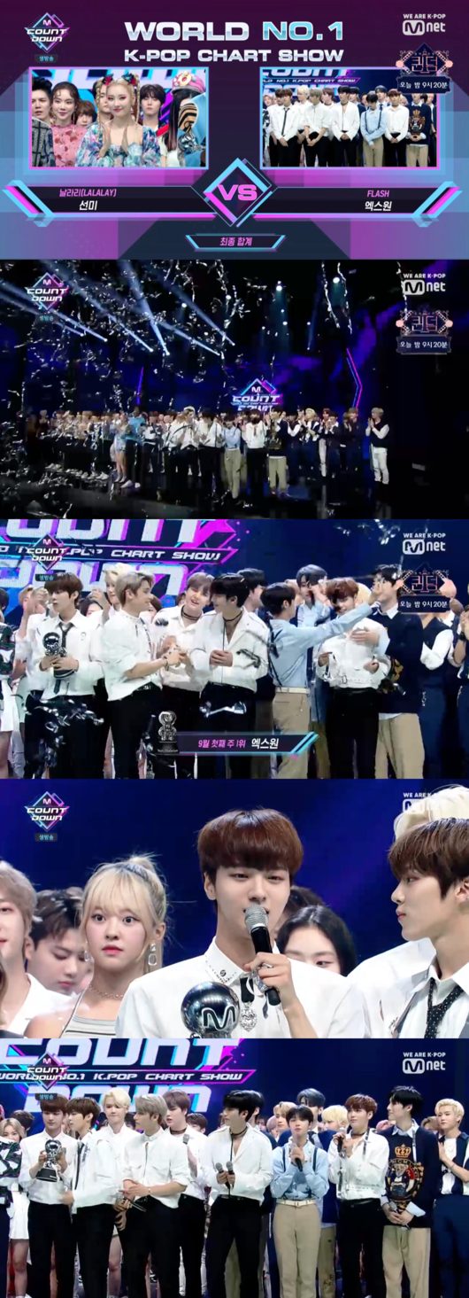 Vào chiều ngày 05/09, tập 633 của chương trình âm nhạc M Countdown được phát sóng trên đài truyền hình cáp Mnet. Các nhóm nhạc đình đám sẽ thể hiện trên sân khấu để quảng bá cho những sản phẩm mới của mình. Bên cạnh đó, cuộc chiến giành ngôi vị Quán quân chưa bao giờ hết hồi hộp. Được biết ca khúc Lalalay của Sunmi và FLASH của X1 đã trở thành hai ứng cử viên đầu tiên cho chiếc cúp vô địch. Theo kết quả cuối cùng, chiến thắng đã thuộc về 11 thành viên của nhóm nhạc tân binh X1.