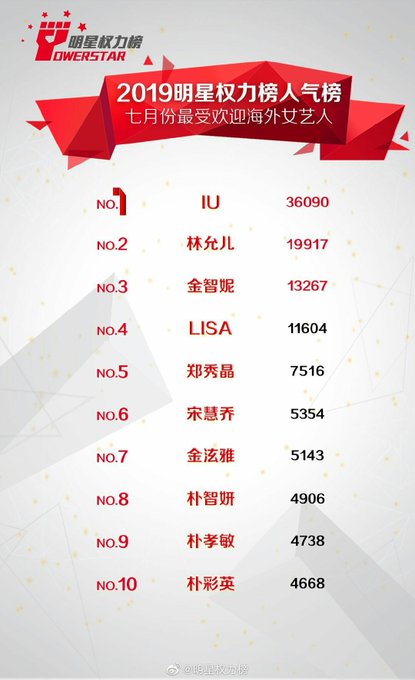 Dù không phải toàn bộ các ngôi sao trong danh sách đều là người Hàn, nhưng họ đều hoạt động tích cực trong ngành công nghiệp giải trí Hàn Quốc.