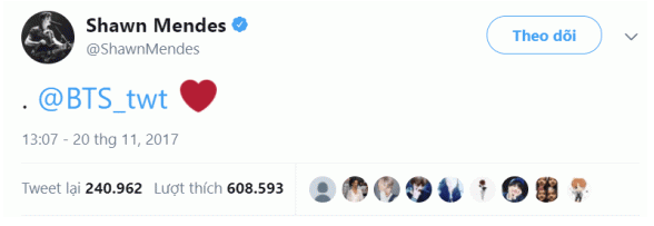 Tại lễ trao giải AMAs 2017 Shawn vô cùng thích thú trước màn biểu diễn của nhóm nhạc đến từ Hàn Quốc BTS. Anh không tiếc lời khen ngợi BTS là “những chàng trai đẹp nhất mình từng gặp” mà còn háo hức chờ đợi cơ hội được hợp tác với nhóm nhạc. Mới đây trong radio show “Roz And Mocha” Shawn tiết lộ rằng sẽ có một màn hợp tác giữa anh và BTS, tuy nhiên anh không chia sẻ thêm về lịch trình ra mắt sản phẩm này.