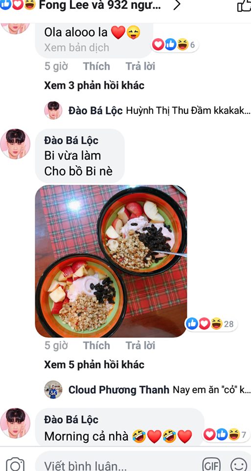 Thế nhưng ở dưới phần bình luận, nam ca sĩ tiếp tục chia sẻ hình ảnh 2 tô trái cây thơm ngon kèm theo chú thích:” Bi vừa làm cho bồ Bi nè”.