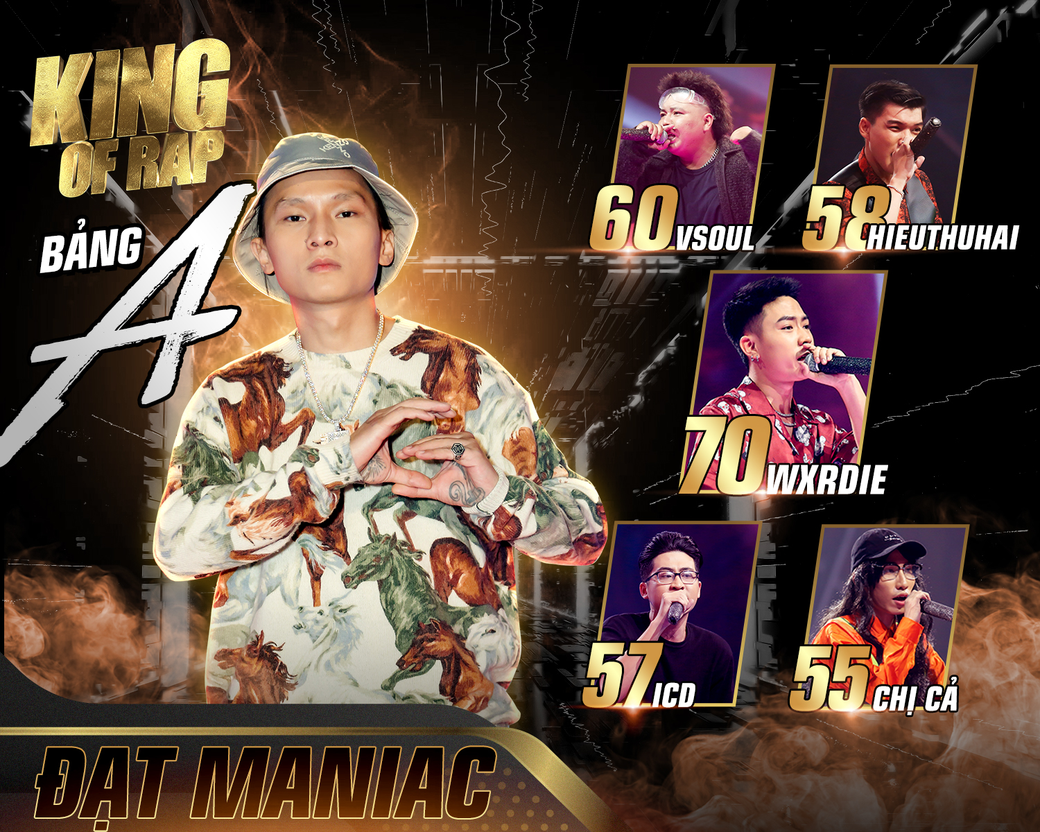 Bảng A hiện tại có 4 thành viên vẫn duy trì được vị thế từ vòng trước là Wrxdie, Vsoul, ICD và Chị Cả. Duy nhất HIEUTHUHAI có cú nhảy vọt từ bảng B lên bảng A. Theo luật chơi của King Of Rap, số like khi thí sinh này cướp từ thí sinh khác sẽ không bị đồng nhất, đồng nghĩa với việc mỗi Rapper vẫn thuộc mentor ban đầu cho like.
