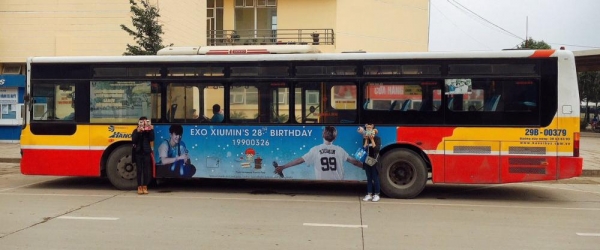 Đầu năm 2017, các diễn đàn hâm mộ Kpop nước ta một lần nữa dậy sóng khi cư dân mạng truyền tay nhau bức ảnh một chiếc xe bus có dán hình nam thần tượng Xiumin - anh cả của nhóm nhạc nổi tiếng nhất nhì Hàn Quốc hiện tại EXO.