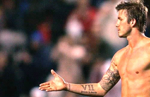 Năm 2000, sau 3 năm kể từ lúc gặp gỡ và 1 năm kể từ ngày kết hôn, David Beckham công khai khẳng định tình yêu sâu đậm dành cho vợ bằng cách đặt tên Victoria lên trên cánh tay trái của mình. Hình xăm chỉ đơn giản là viết chữ “Victoria” nhưng đặc biệt ở chỗ nó ẩn mình trong dòng chữ tiếng Phạn.
