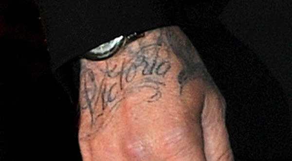 Vào ngày 16/9/2013, David Beckham đã tiết lộ một hình xăm tay khác có liên quan đến bà xã Victoria khi tham dự một số hoạt động trong khuôn khổ Tuần lễ thời trang London. Anh xăm tên “Victoria” của bà xã lên mu bàn tay phải của mình với kiểu phông chữ thanh lịch và uyển chuyển.