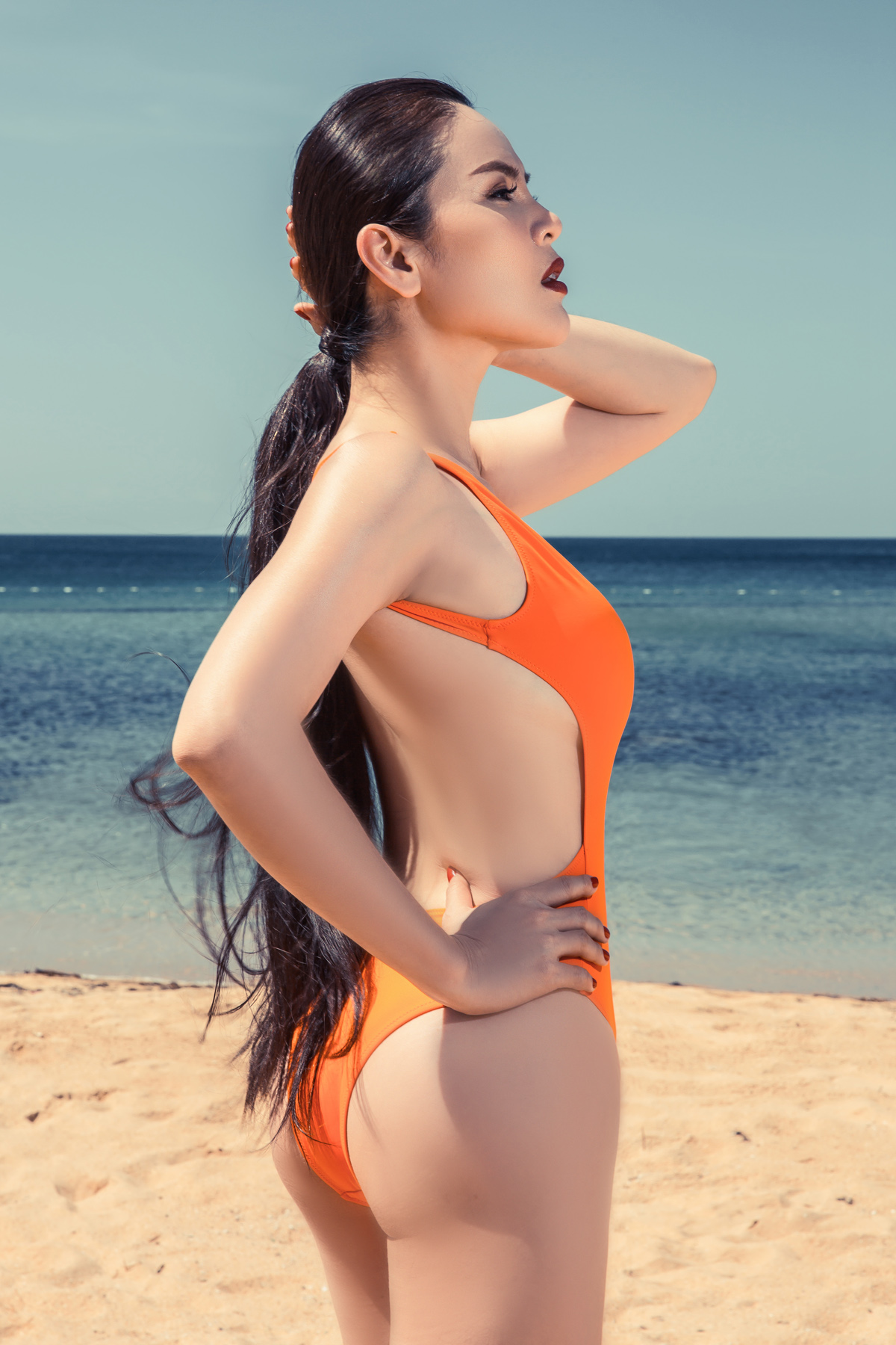 Cô tỏ ra vô cùng thông minh khi lựa chọn trang phục bikini được cắt cúp tỉ mỉ, khéo léo khoe làn da nuột nà cùng vòng eo đáng mơ ước.