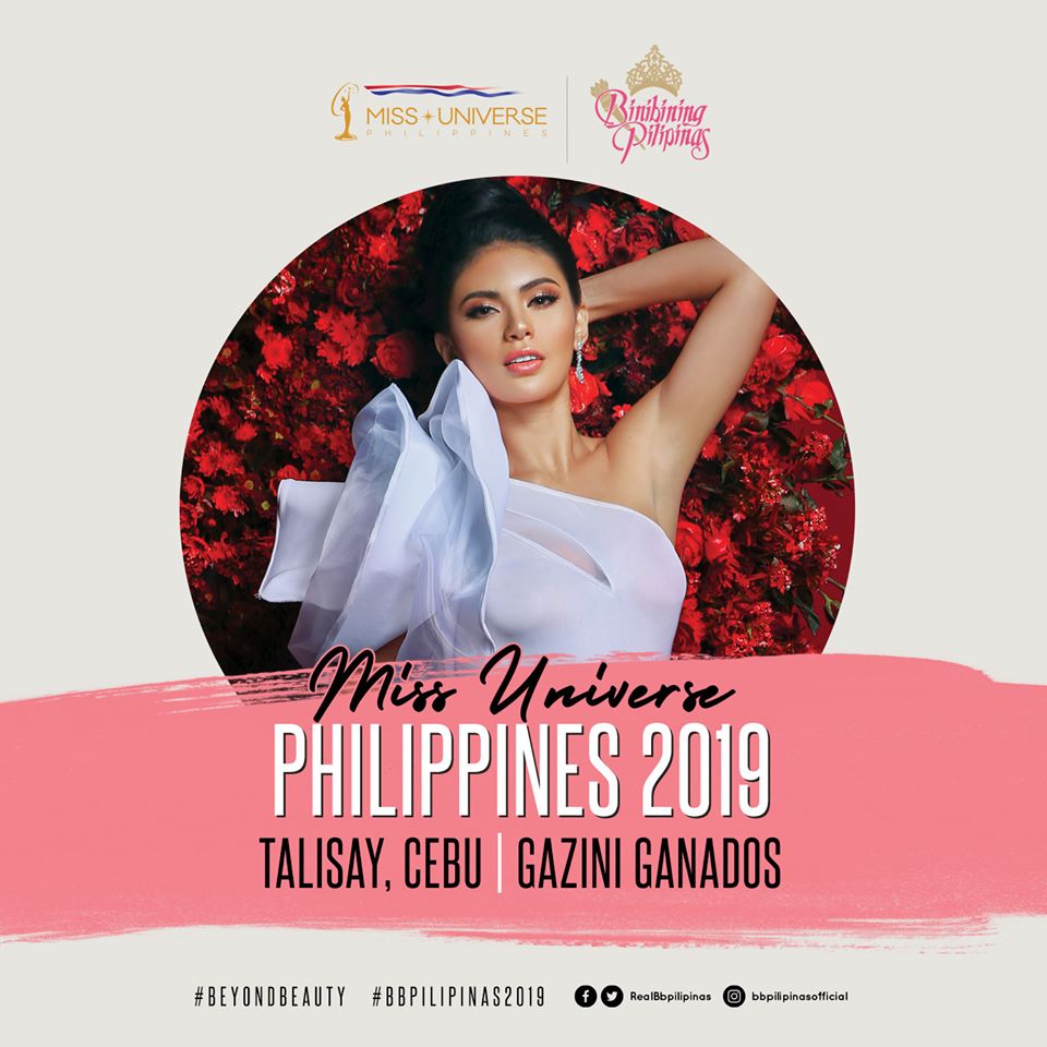Mỹ nhân nhận được danh hiệu danh giá nhất cũng như nhiều sự chú ý nhất chính là Hoa hậu Hoàn vũ Philippines 2019 - Gazini Ganados. Cô nàng sinh năm 1995, cao 1.70m nhận vương miện từ đương kim Hoa hậu Hoàn vũ - Catriona Gray và sẽ là đối thủ của Hoàng Thùy tại Miss Universe năm nay.