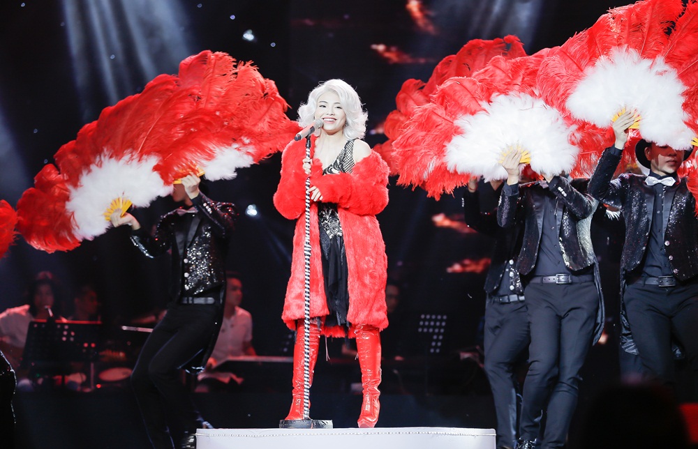 Hiền Mai thể hiện bản mashup Who is loving you - Feeling good tiếp tục cho khán giả thấy sự biến hóa không ngừng của mình khi hóa thân thành một cô gái xinh đẹp, kiêu kỳ khoe những bước nhảy điêu luyện, quyến rũ khiến người xem khó rời mắt khỏi màn hình.