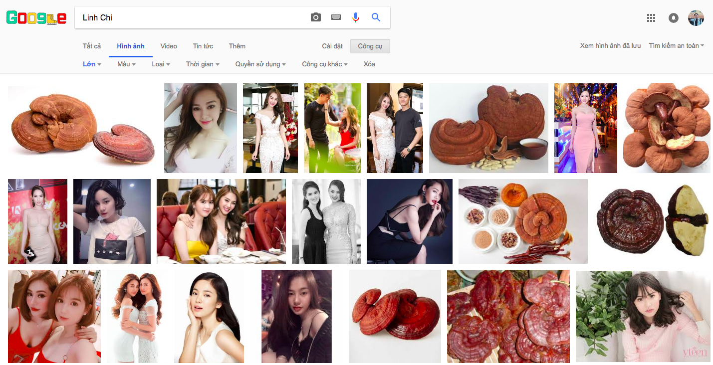 Tuy vậy, việc trùng tên với loạt thảo dược quý hiếm đôi lúc khiến “bách khoa toàn thư Google” cũng phải bó tay trước “nấm Linh Chi” này. Tất nhiên, kết quả trả lại không thể ấn tượng như 4 nhân vật trên kia rồi.