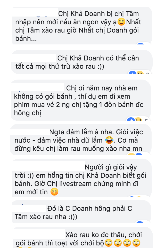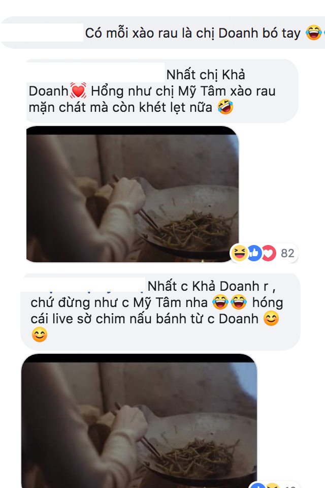 Rất nhiều bình luận của người hâm mộ khơi gợi lại hình ảnh xưa, cảnh nữ nghệ sĩ “xào rau muống” trong một MV. Người hâm mộ nữ ngôi sao quả quyết idol của mình có thể “giỏi việc nước, đảm việc nhà” chỉ trừ việc “xào rau muống”. Rất hiếm khi có một nữ ngôi sao được fan yêu thương đến vậy. Ngay cả những chuyện đáng yêu thế này!