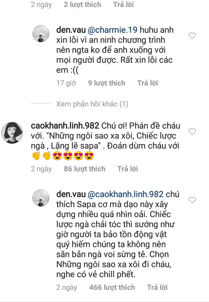 Không chỉ thế, anh còn thường xuyên dành thời gian trả lời những bình luận của các fan và xưng nhau bằng chú cháu cực ngầu mà cũng vô cùng đáng yêu thế này đây.