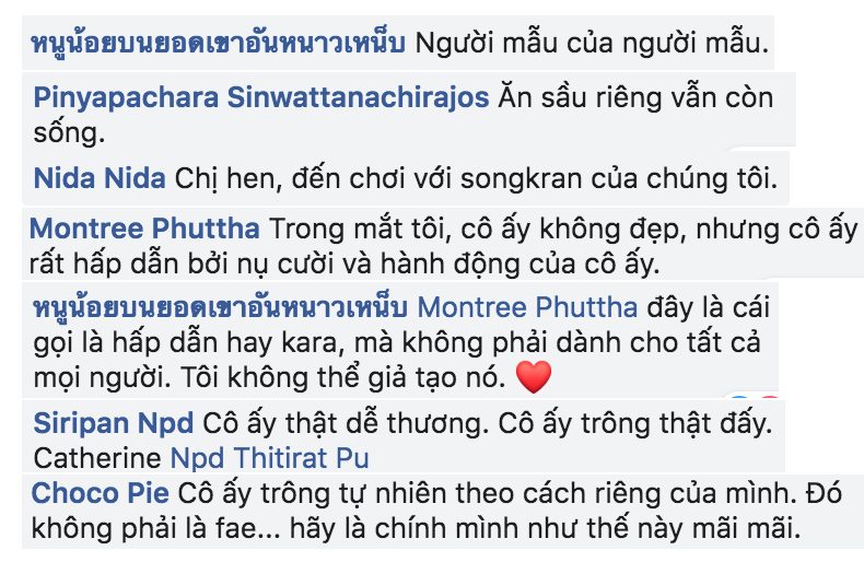Nhiều những bình luận ngưỡng mộ và tỏ bày sự yêu thương gửi đến người đẹp Việt. Rất nhiều fan Thái xúc động, vui mừng và cũng vô cùng tiếc nuối vì sau một thời gian rất lâu tỏa sáng trên đất Thái, cô H'Hen đã quay lại thăm nơi này nhưng tiếc là không thể gặp mặt cô ấy.