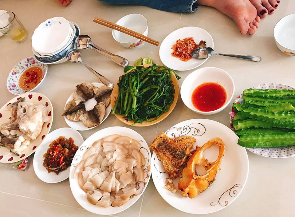 Bữa cơm trưa giản dị của Ngọc Trinh.