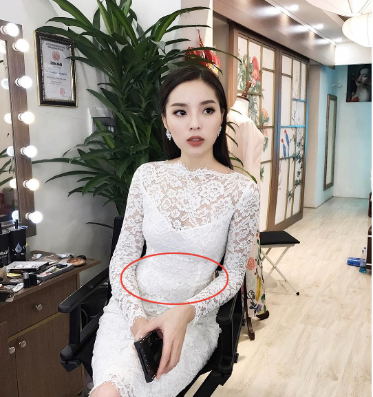 Mới đây, Hoa hậu Kỳ Duyên cũng bị cư dân mạng phát hiện ra vòng 2 ngấn mỡ kém thon gọn khi diện váy trắng bó sát cơ thể. Tuy nhiên, không ít người cho rằng do tư thế ngồi nên mới khiến vòng 2 của cô to bất thường.