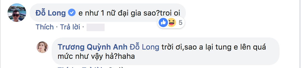 Chia sẻ của Trương Quỳnh Anh đã nhanh chóng nhận được rất nhiều sự quan tâm của giới anh em nghệ sĩ. Ai nấy đều bày tỏ sự ngưỡng mộ với cô nàng họ Trương sinh đẹp. NTK Đỗ Long đã phải thốt lên khi nhìn thấy cô em gái: “Như một nữ đại gia sao? Trời ơi!”.