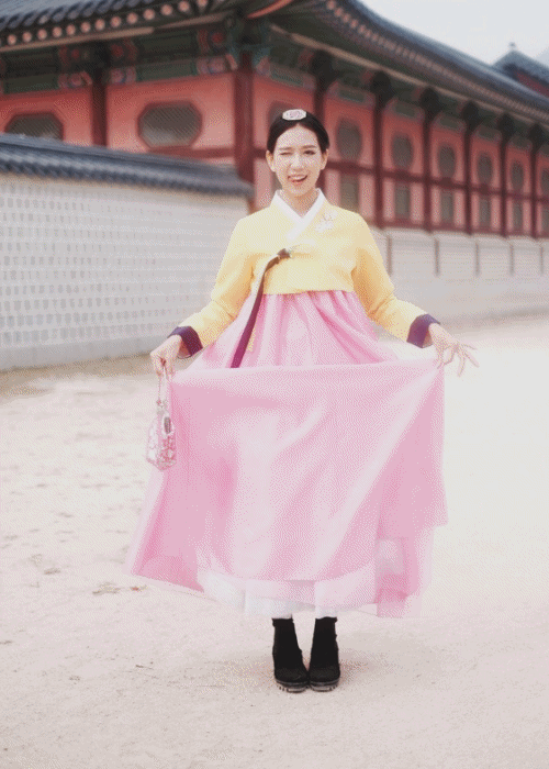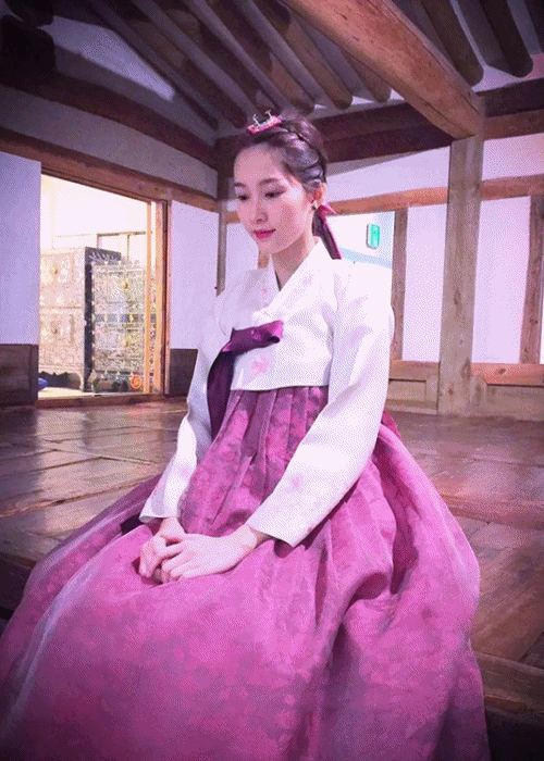 Min trở nên vô cùng dịu dàng, nữ tính khi mặc Hanbok.