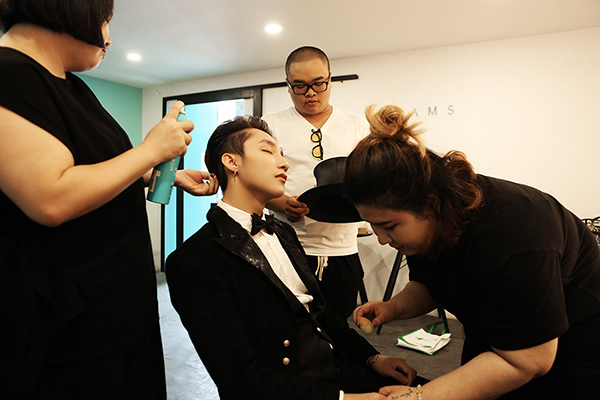 Vừa đến phim trường, Sơn Tùng đã được ê-kíp chăm sóc cẩn thận.