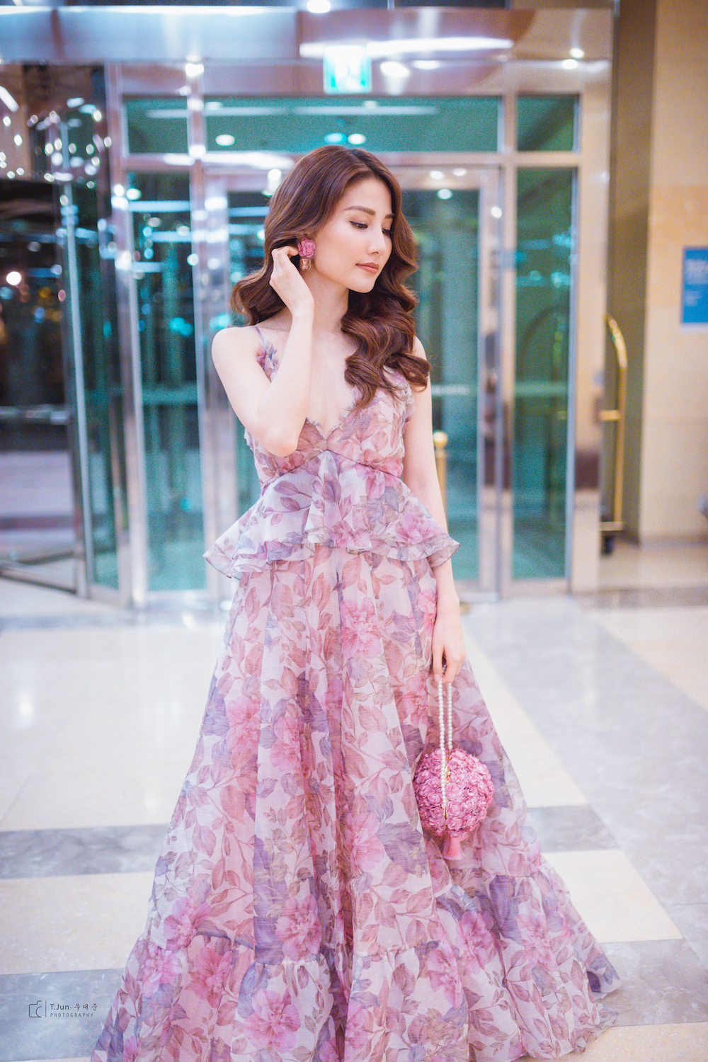 Sở hữu vẻ ngoài nhẹ nhàng và lãng mạn khi diện một chiếc đầm dáng dài tông hồng, Diễm My 9X xinh tựa nàng công chúa, khoe vòng một căng tràn đầy quyến rũ.
