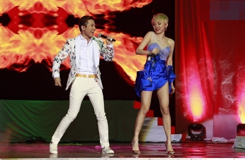 Mai Tiến Dũng từng biểu diễn cùng Tóc Tiên trên một sân khấu ca nhạc.
