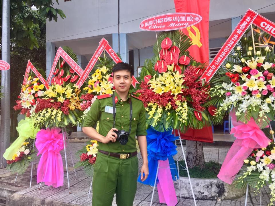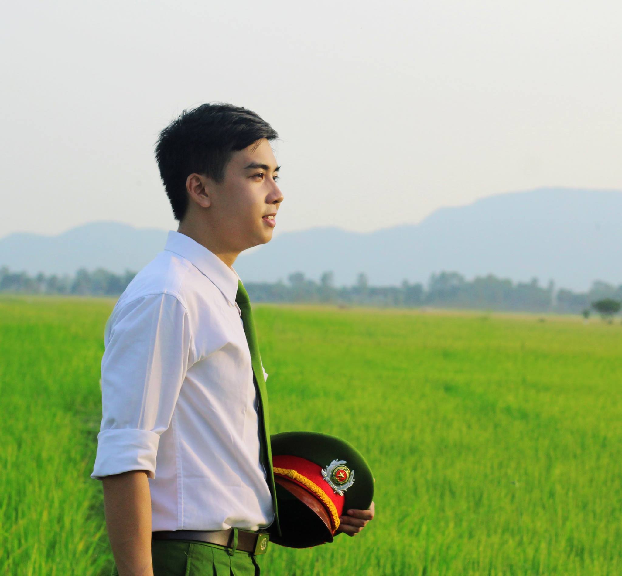 Duy Toàn điển trai trong bộ quân phục của ngành.