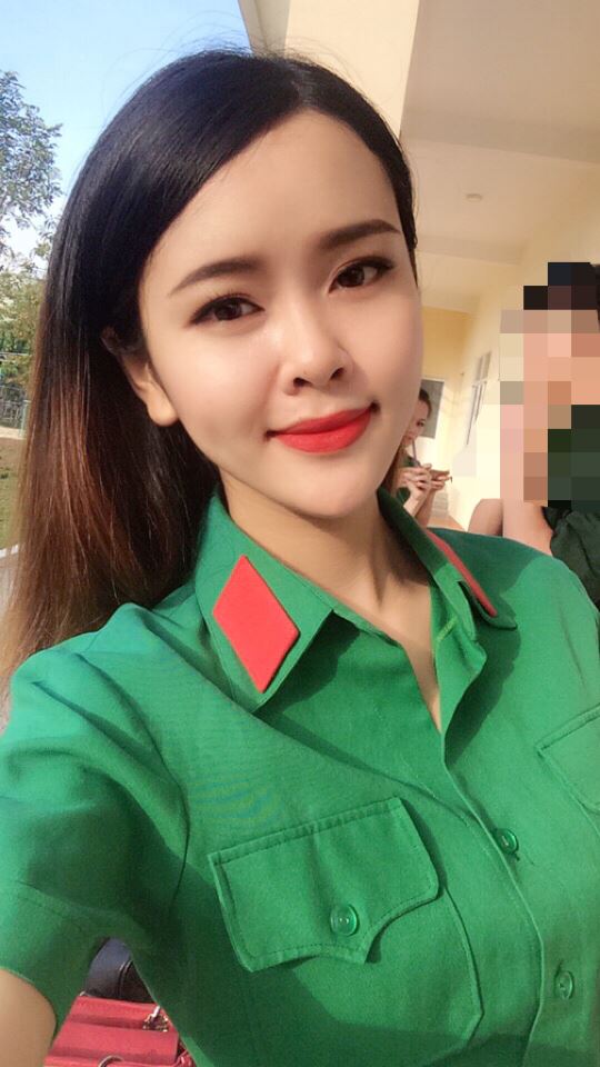 Trong bộ quân phục, cô nàng vẫn giữ vẻ trẻ trung đầy nữ tính.