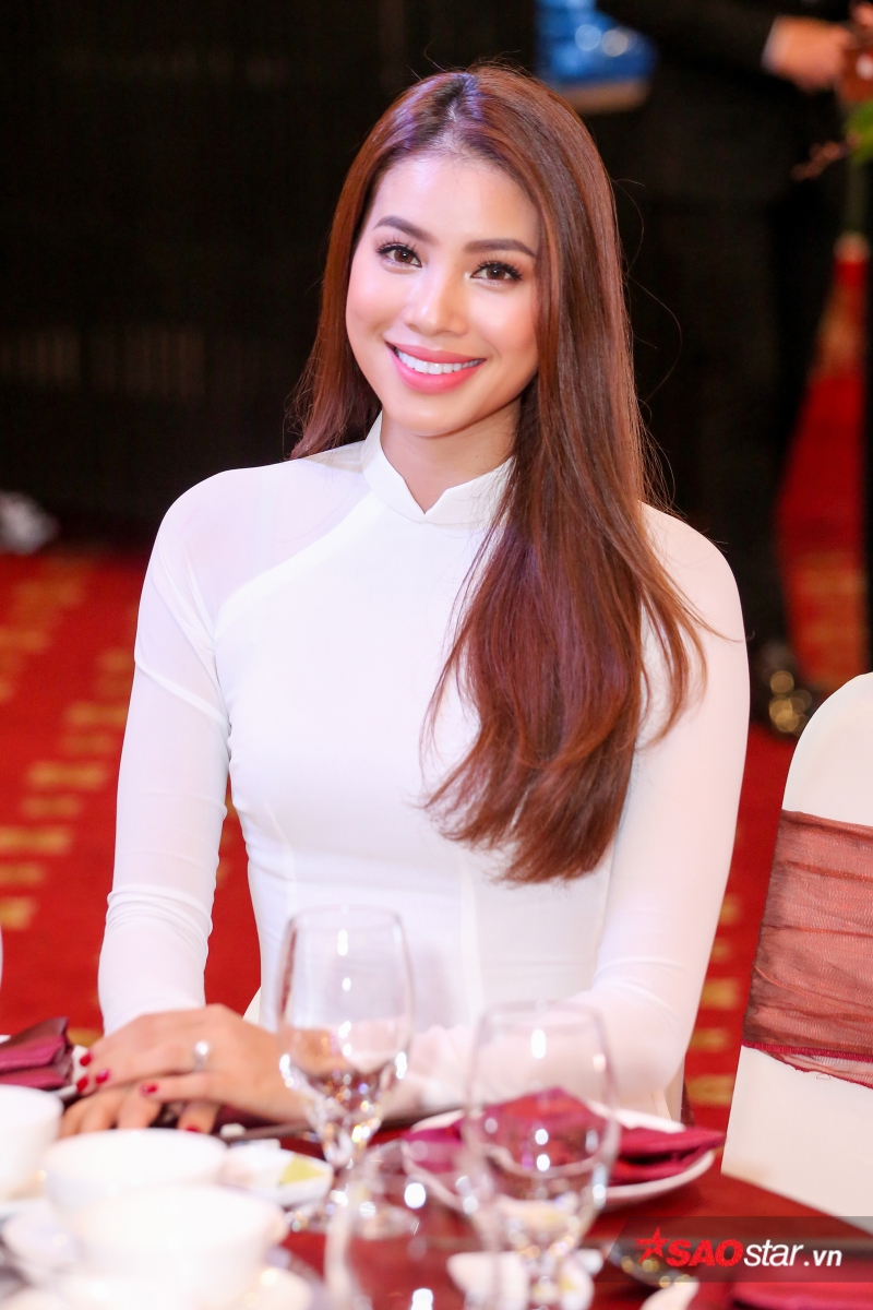 Chọn cho mình bộ áo dài của của nhà thiết kế Thuận Việt, nàng Hoa hậu quốc dân trang điểm nhẹ nhàng, khoe đẹp nền nã, khác biệt hình ảnh cá tính, quyến rũ thường thấy.