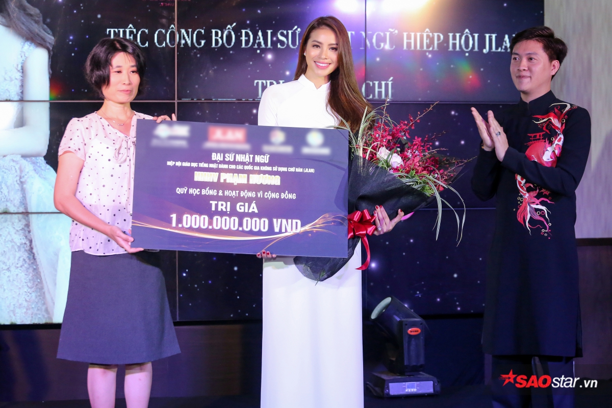 Tại sự kiện, Hoa hậu Phạm Hương vinh dự tiếp nhận học bổng và hoạt động vì cộng đồng trị giá 1 tỷ đồng khi đảm nhiệm vai trò đại sứ.