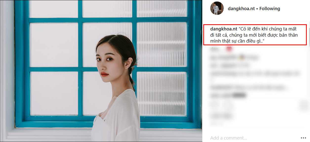 Và Đăng Khoa cũng từng đăng một status đầy tình cảm trên trang instagram của anh. Dù không nói tên, nhưng cách anh đăng hình Jun Vũ kèm theo status như một lời khẳng định rằng cô chính là điều bản thân anh cần nhất lúc này.