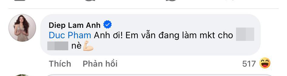 Đáng chú ý, bên dưới bài viết, Diệp Lâm Anh "tag" Facebook cá nhân của chồng cũ kèm theo dòng nhắn nhủ: "Đức Phạm. Anh ơi, em vẫn đang làm marketing cho T. nè".