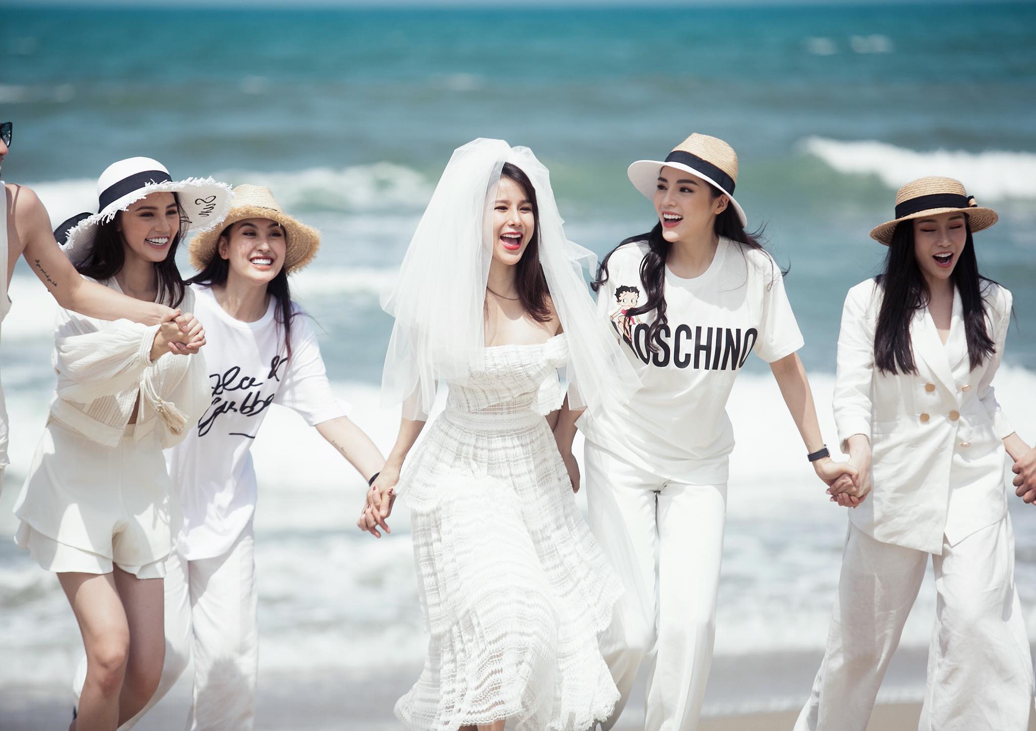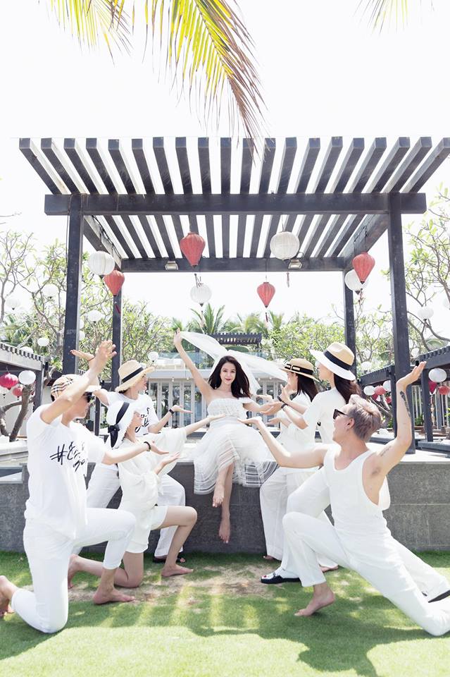 Trong trang phục trắng tinh khôi, hội bạn thân có kỳ nghỉ dưỡng trước ngày chân dài sinh năm 1989 lên xe hoa.
