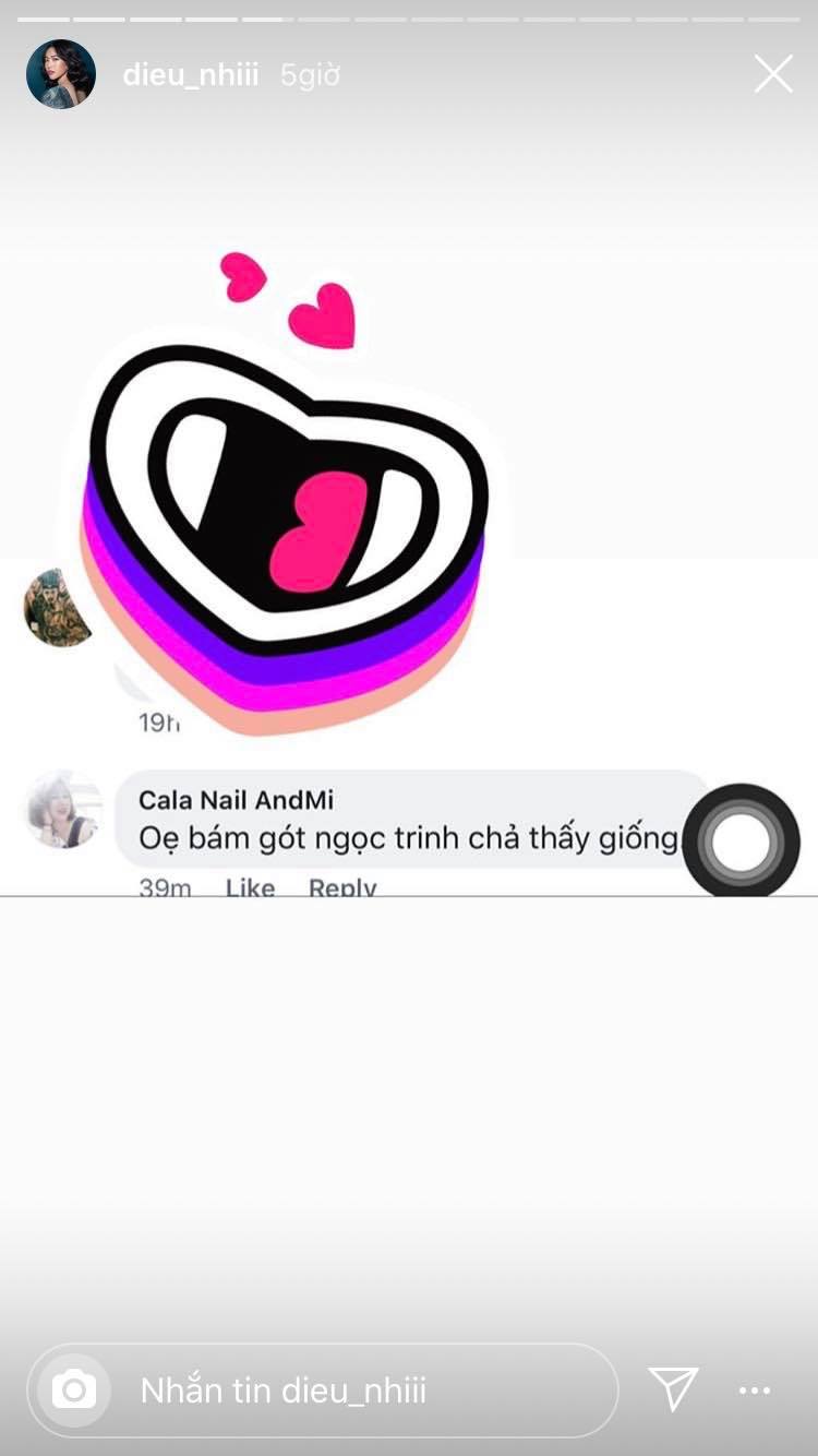 Hình ảnh được Diệu Nhi đăng tải chụp lại bình luận của cư dân mạng trên một trang mạng xã hội. Trong đó, các antifan dùng lời lẽ khiếm nhã để so sánh cô với Ngọc Trinh, đồng thời phán xét Diệu Nhi bám gót, đi theo con đường của Ngọc Trinh nhưng không đủ xinh đẹp, gợi cảm để thành công.