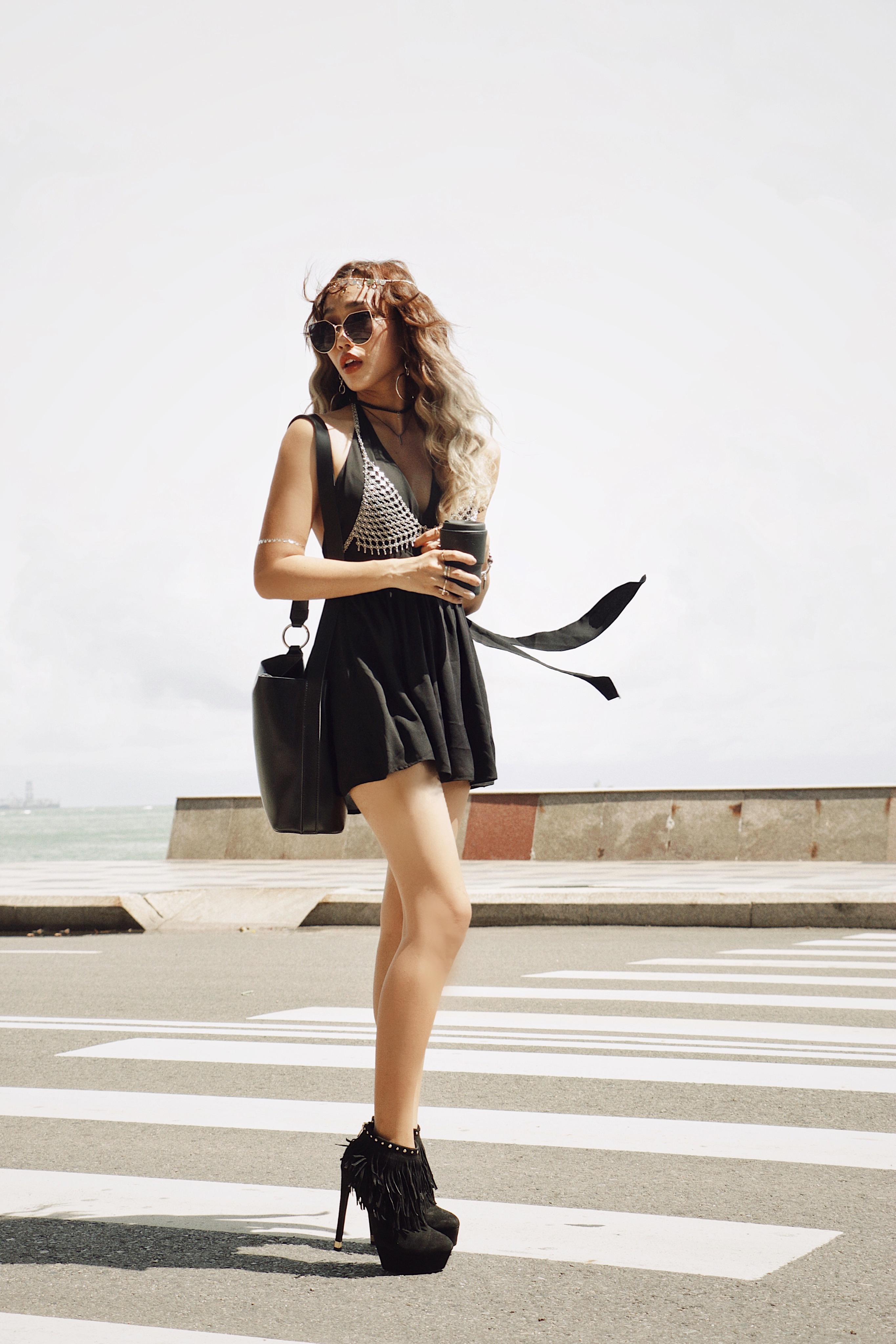 Những bộ cánh này không quá gợi cảm, nhưng vẫn tôn lên được sự khỏe khoắn trong vóc dáng của Diệu Nhi thông qua những lớp ren cut-out mờ ảo.