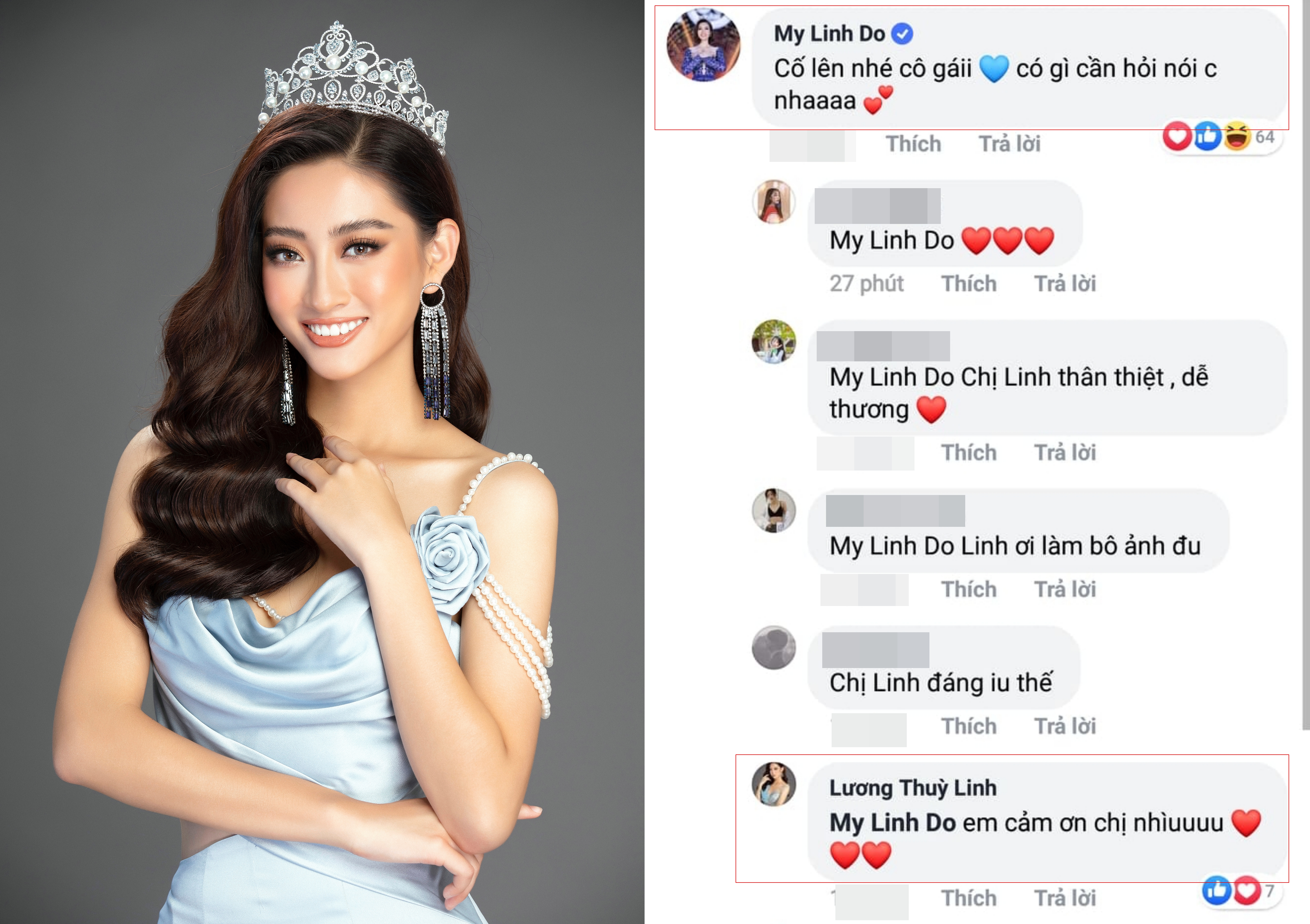 Mới đây, khi Lương Thùy Linh chia sẻ hình ảnh đội chiếc vương miện trị giá 3 tỷ lên trang cá nhân, Hoa hậu Việt Nam 2016 - Đỗ Mỹ Linh đã để lại bình luận động viên “em gái song sịnh” và nhắc nhở ứng viên dự thi Miss World 2019 cứ tìm đàn chị học hỏi nếu có bất kỳ thắc mắc nào. Vì cả 2 chưa có ảnh chụp cùng nhau nên bên dưới bình luận “Cố lên nhé cô gái. Có gì cần hỏi, cứ nói chị nha” của Đỗ Mỹ Linh, không ít fan gợi ý cặp đôi song Linh cùng thực hiện bộ ảnh khoe nhan sắc “mười phân vẹn mười”.