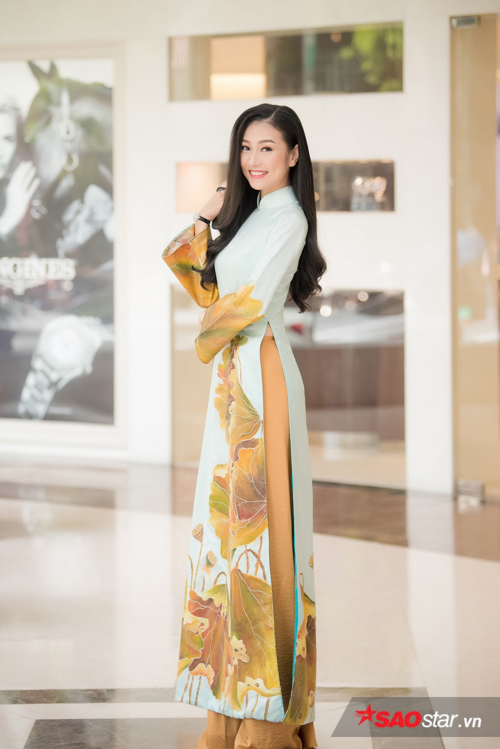 Hoa hậu Hà Kiều Anh nền nã với áo dài truyền thống.