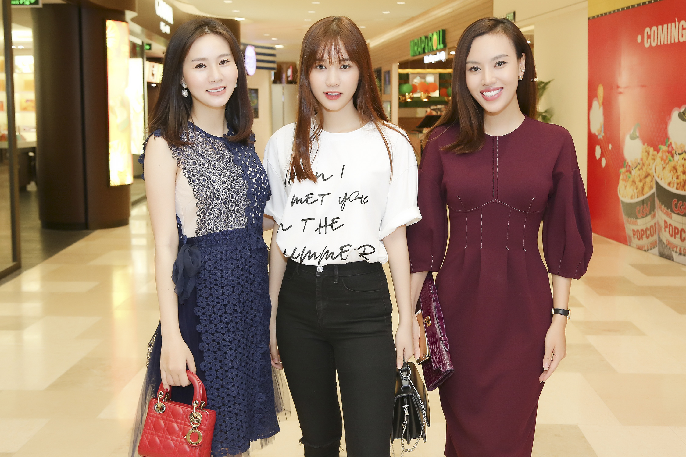 Người đẹp chụp ảnh lưu niệm cùng chân dài Quỳnh Hương (giữa) và Á hậu Duyên Trần.