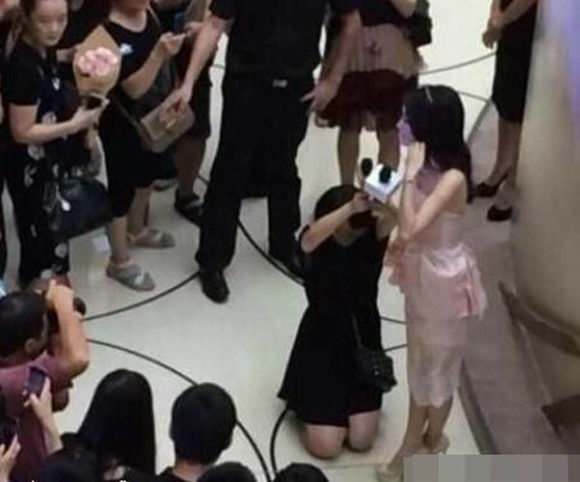 Tần Lam còn dính lùm xùm cho 1 cô gái quỳ gối cầm mic trong sự kiện vì sợ dính khung hình.