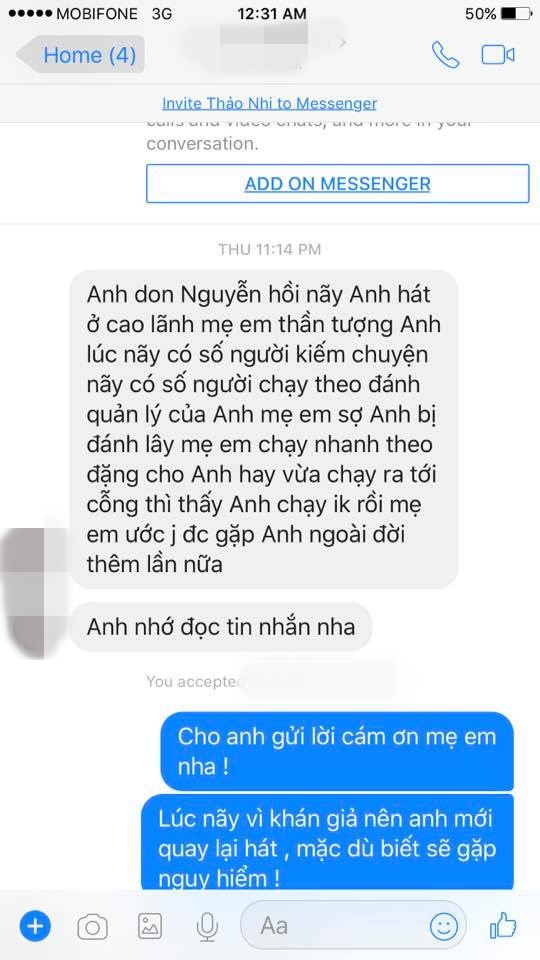 Tin nhắn một fan gửi cho Don Nguyễn khi chứng kiến toàn bộ sự việc.