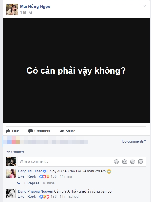 Trước sự việc này, Đông Nhi đã lập tức đăng tải một dòng trạng thái ngắn gọn lên trang cá nhân với nội dung: “Có cần phải như vậy không?“. Mặc dù không nói đích danh nhưng nhiều khán giả cho rằng bạn gái Ông Cao Thắng đang ám chỉ tới dòng trạng thái cách đó không lâu mà Noo Phước Thịnh đăng tải.