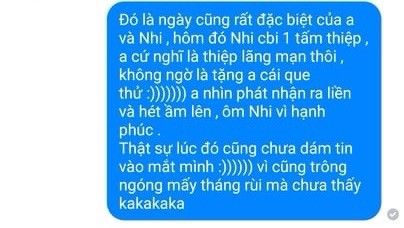 Theo như tin nhắn tiết lộ, thì hôm đó Đông Nhi đã chuẩn bị 1 tấm thiệp và Ông Cao Thắng vẫn chỉ nghĩ rằng đó là điều lãng mạn thường ngày mà bà xã dành cho mình. Không ngờ khi dở tấm thiệt ra thì đó là một cái que thử. Lúc đó, Ông Cao Thắng đã hét ầm lên, ôm Đông Nhi thật hạnh phúc.