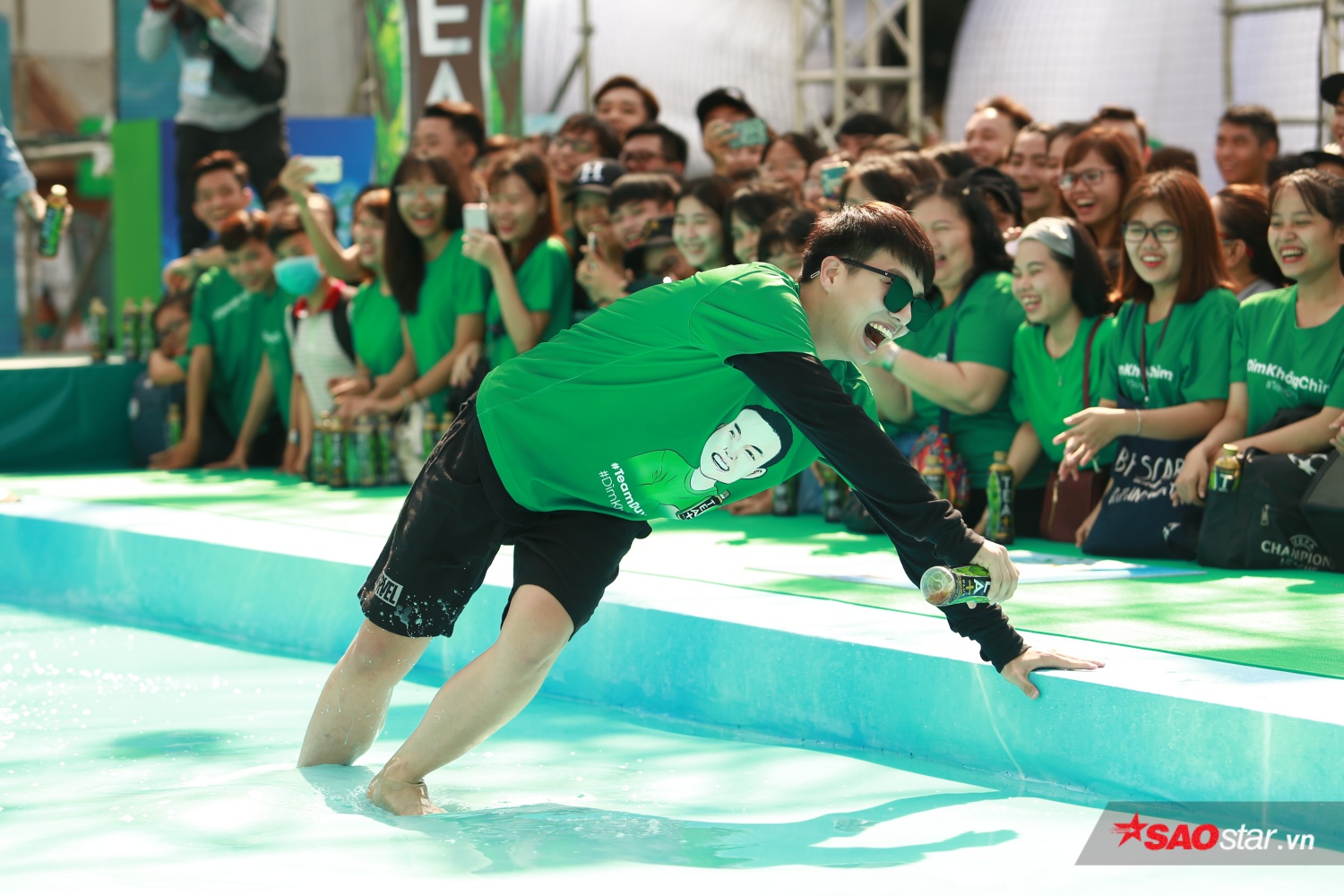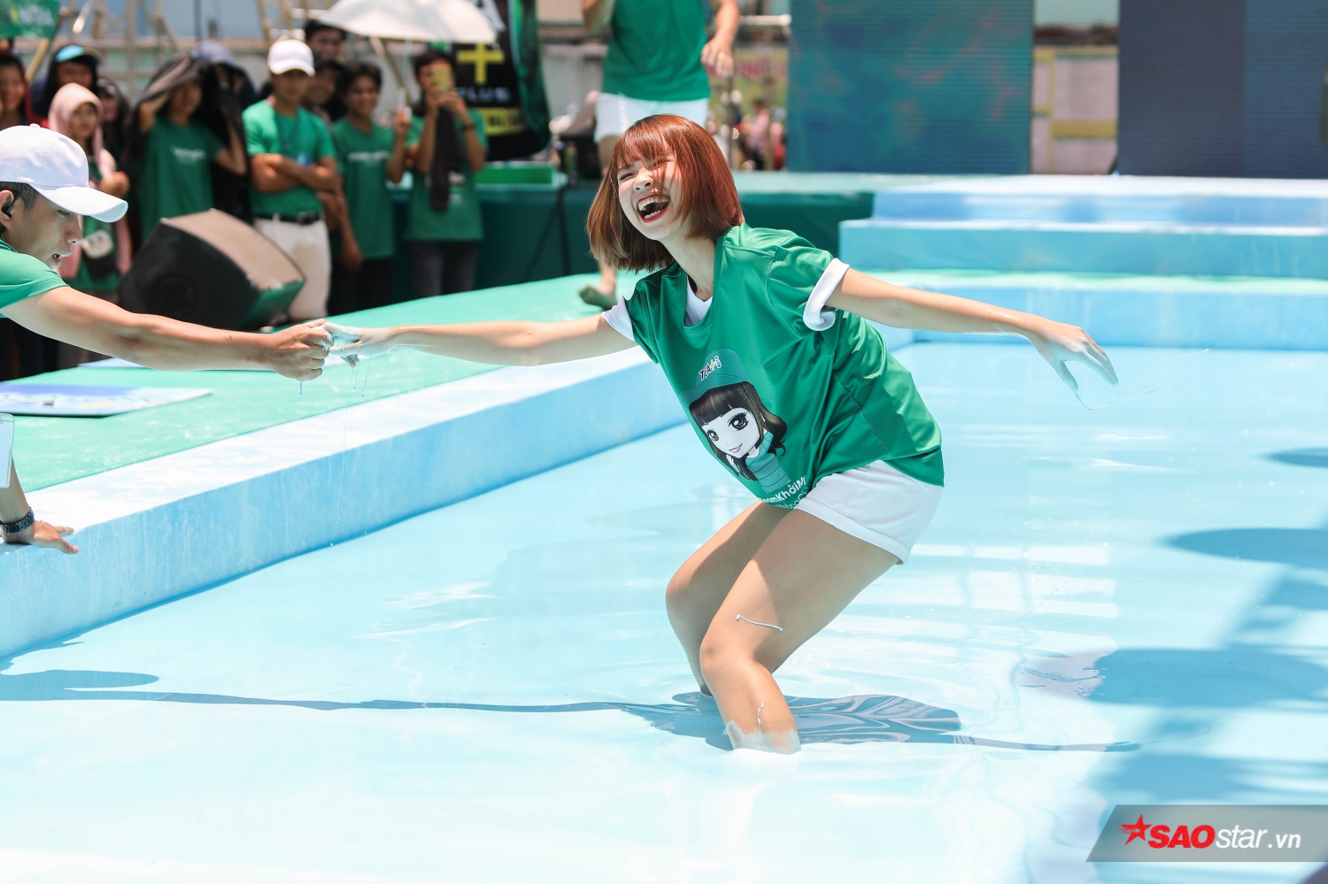 Tạị sự kiện, Đông Nhi, Minh Hằng, Hari Won,… không chỉ chiều lòng các fan khi đi catwalk trên mặt nước, họ còn “quẩy” nhiệt tình cùng các bạn trẻ, mặc dù té ngã không thương tiếc nhưng cuộc chơi vẫn diễn ra vô cùng vui vẻ và hào hứng.