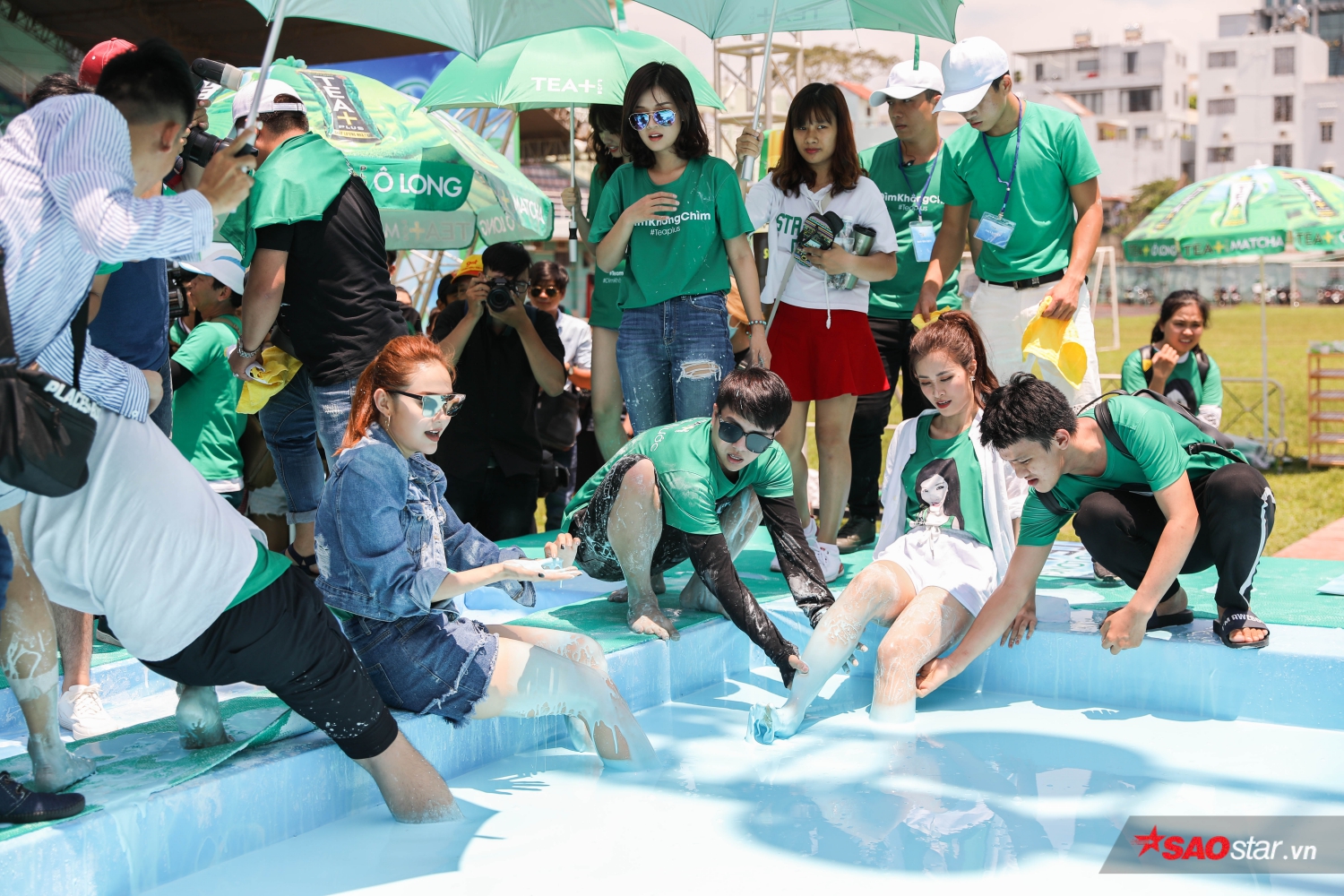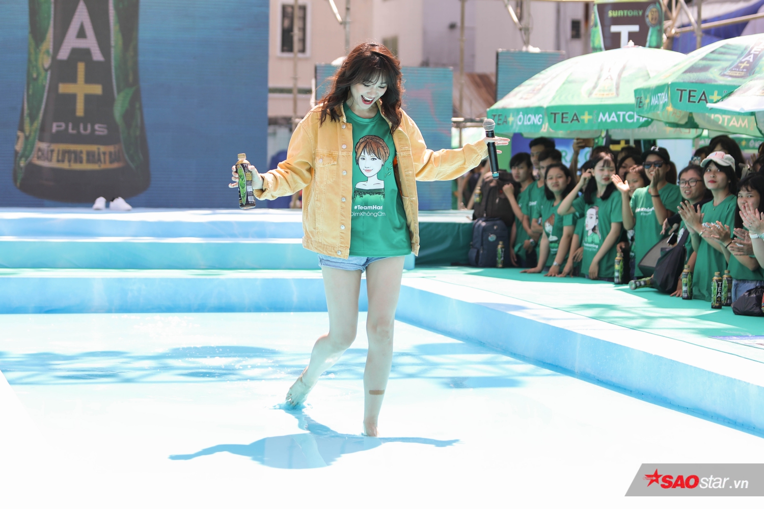 Sáng 12/5, sự kiện TEA+ Đi trên nước của nhãn hàng TEA+ được diễn ra tại sân vận động Hoa Lư, TP.HCM với sự tham gia của những nghệ sĩ hàng đầu trong showbiz Việt như Mỹ Tâm, Đông Nhi, Minh Hằng, Hari Won, Jun Phạm, Will, Duy Khánh và Hoàng Yến Chibi thu hút sự quan tâm và chú ý của hàng trăm người hâm mộ.